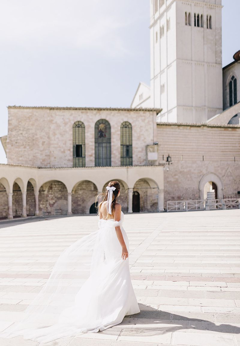 — věděli jsme, že to musí být něco opravdu výjimečného. Společně jsme našli perfektní místo: Castello di Petrata, úchvatné sídlo zasazené v kopcích Assisi s výhledem na posvátnou baziliku svatého Františka.