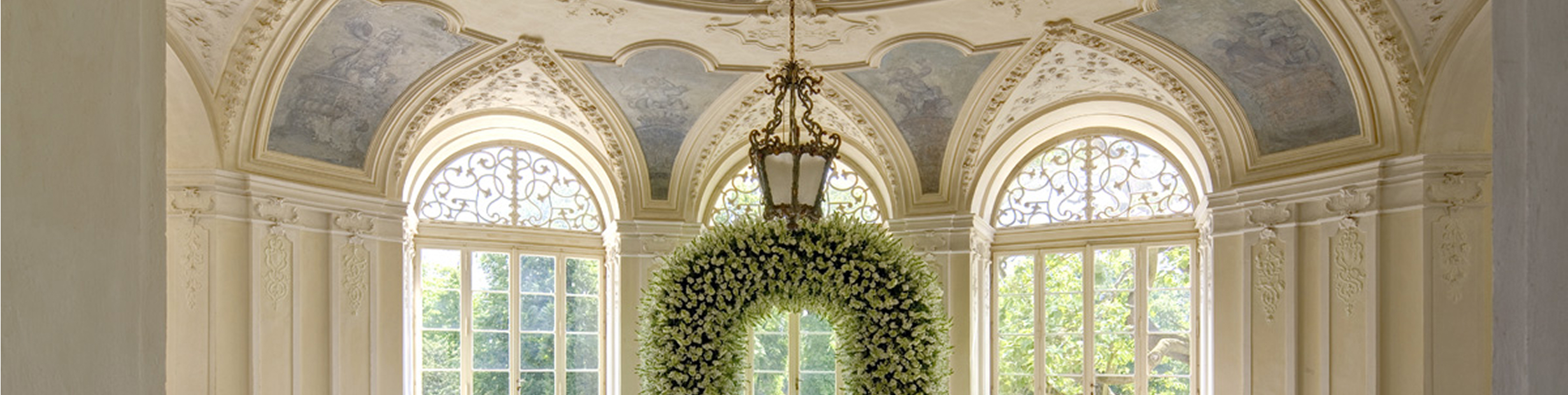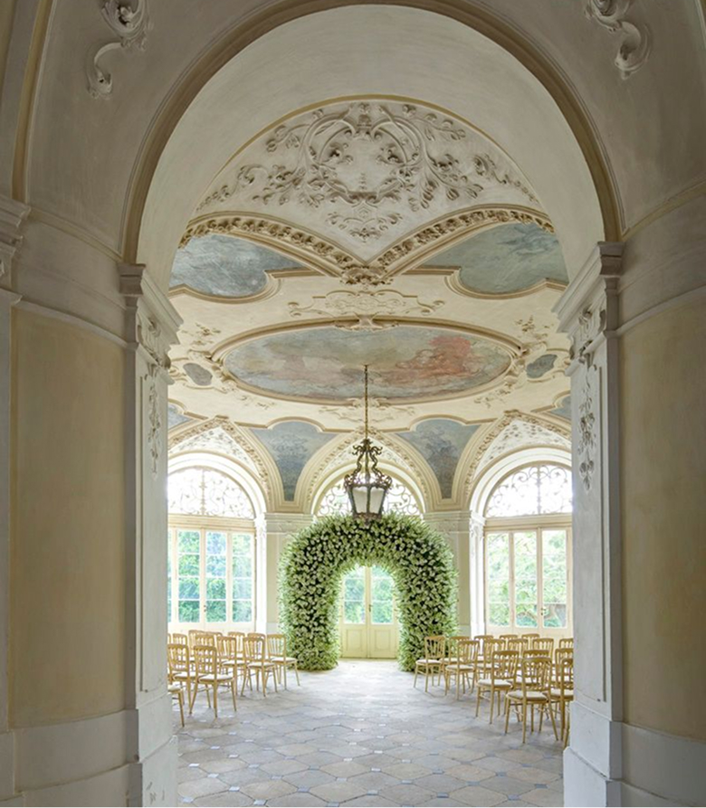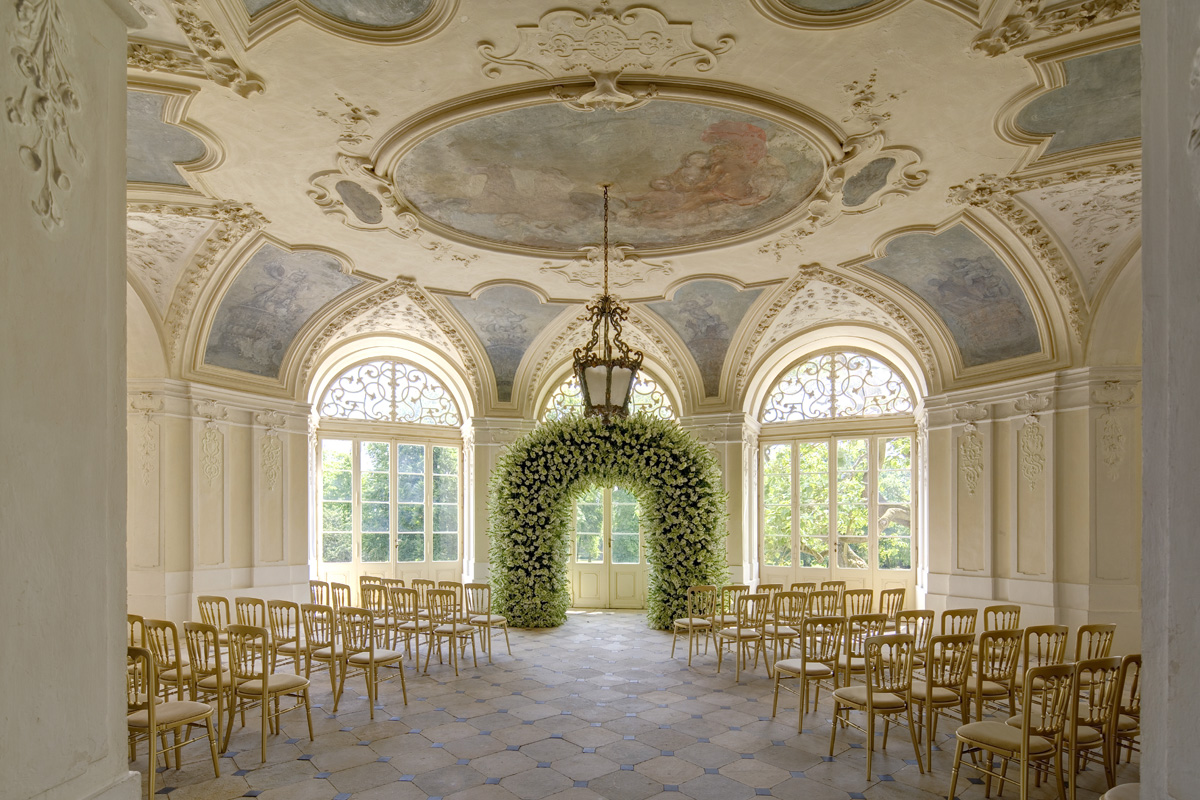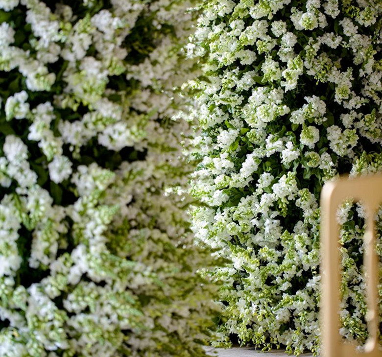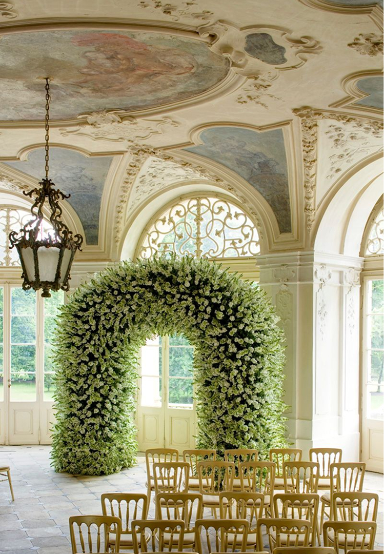 • Nevěsta snila o nadrozměrném květinovém oblouku umístěném uprostřed jinak prázdné místnosti. Patnáctičlenný květinový tým ho přivedl k životu za méně než 24 hodin. Instalace vážila přes tunu a obsahovala více než 5 000 květů.