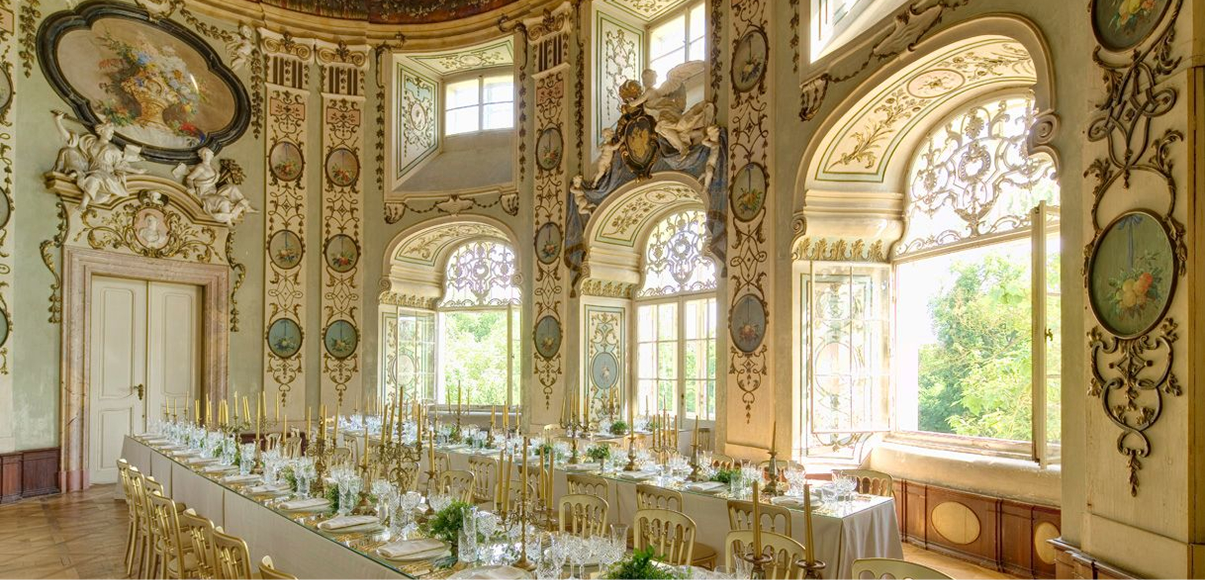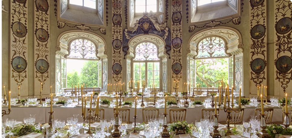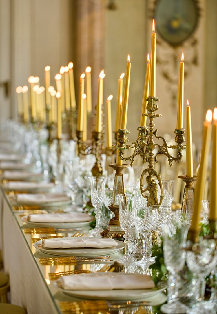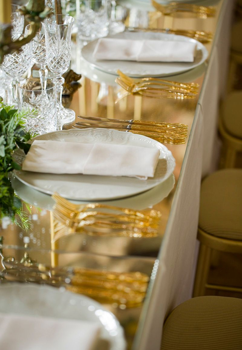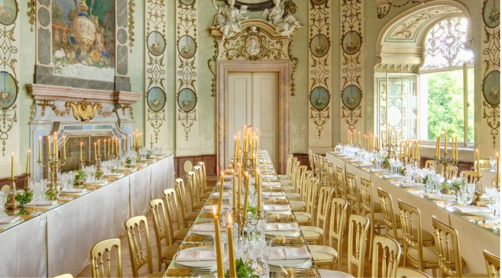• Zlaté příbory pocházely z USA, svíčky z Velké Británie a rafinovaný nádech dodávaly i zakázkové tiskoviny – rovněž navržené v zahraničí a doručené s péčí.